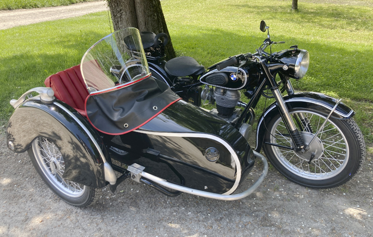 Die abgebildete BMW R 25/2 mit Steib-Seitenwagen stammt aus dem Jahr 1952 und wurde von Oktober 2023 bis Mai 2024 komplett restauriert.